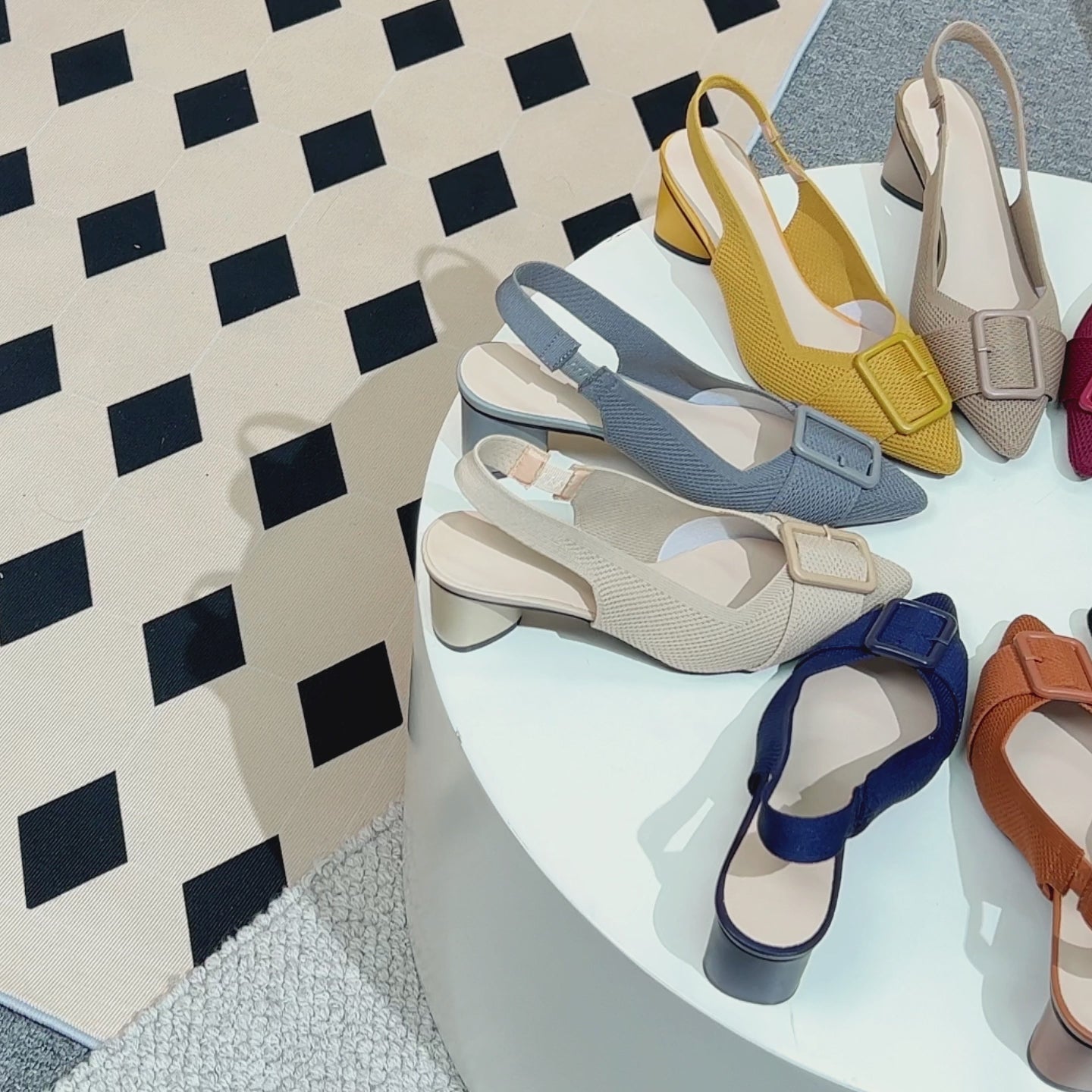 レディース サマーニットサンダル バックストラップ チャンキーヒール