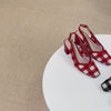 - 格子柄スクエアトゥ+バックストラップでおしゃれかつ脱げにくい