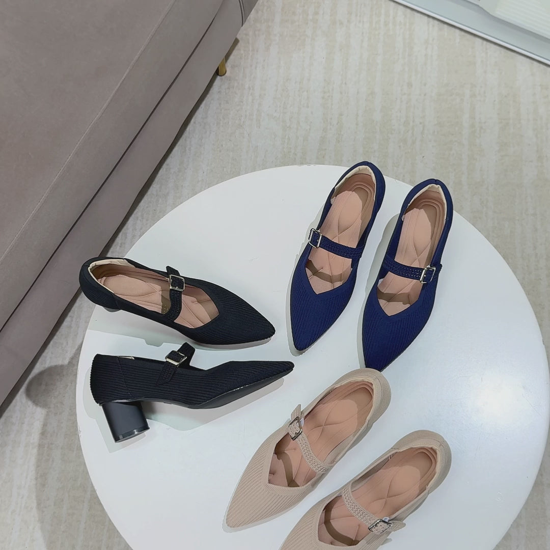 ポインテッドトゥ ストラップ付き 5cmチャンキーヒール パンプス
