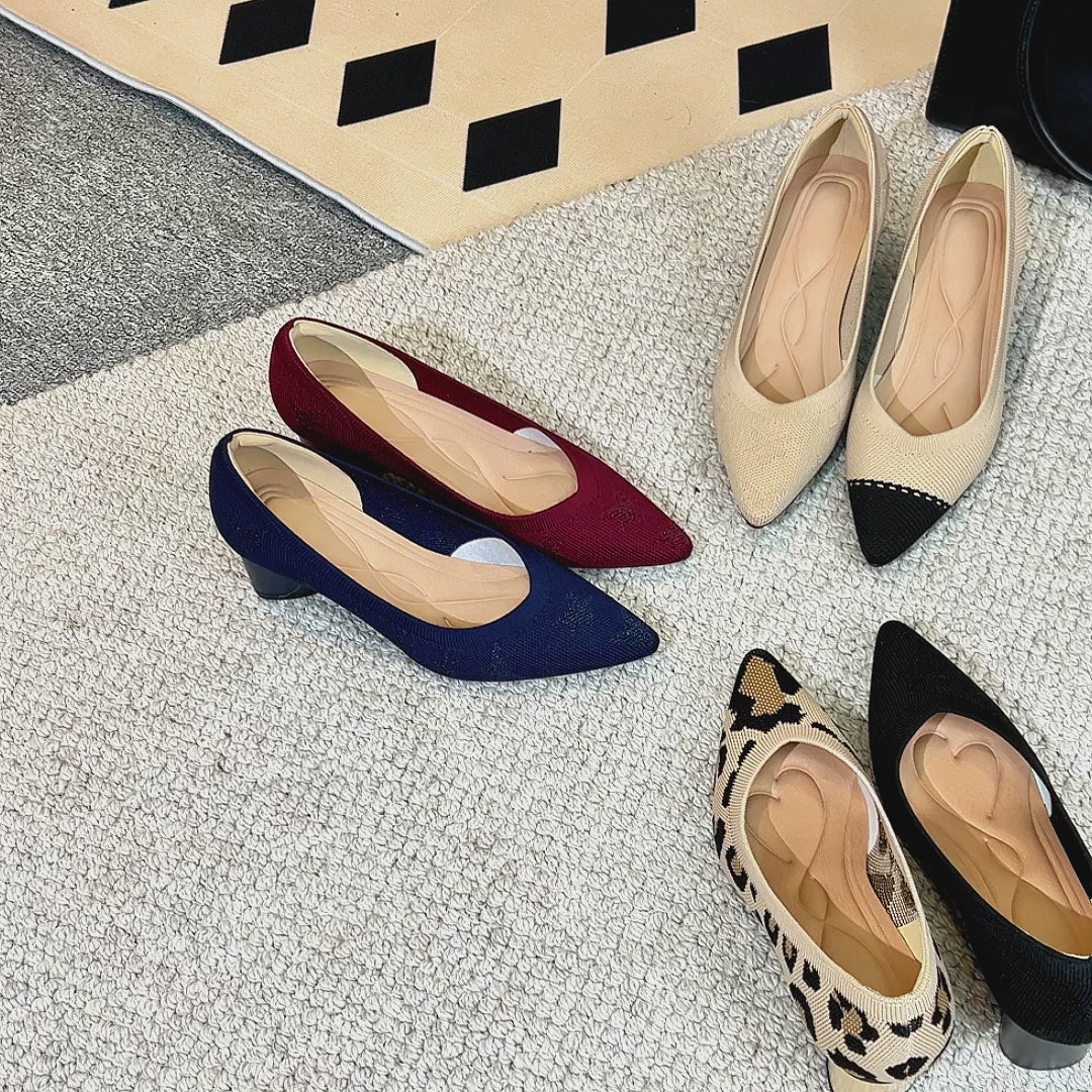 ポインテッドトゥ 5cm チャンキーヒール パンプス レディース