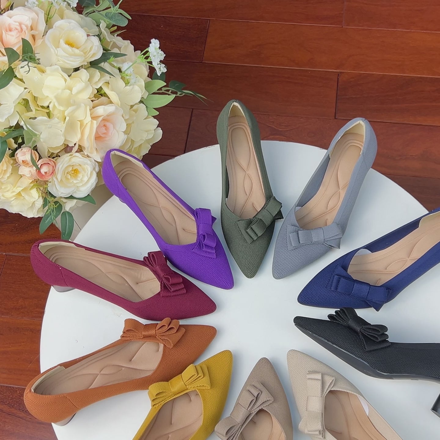 ポインテッドトゥ リボンデザイン 5cmチャンキーヒール パンプス