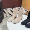 スクエアトゥ太ヒールニットソックスブーツ ショートブーツ
