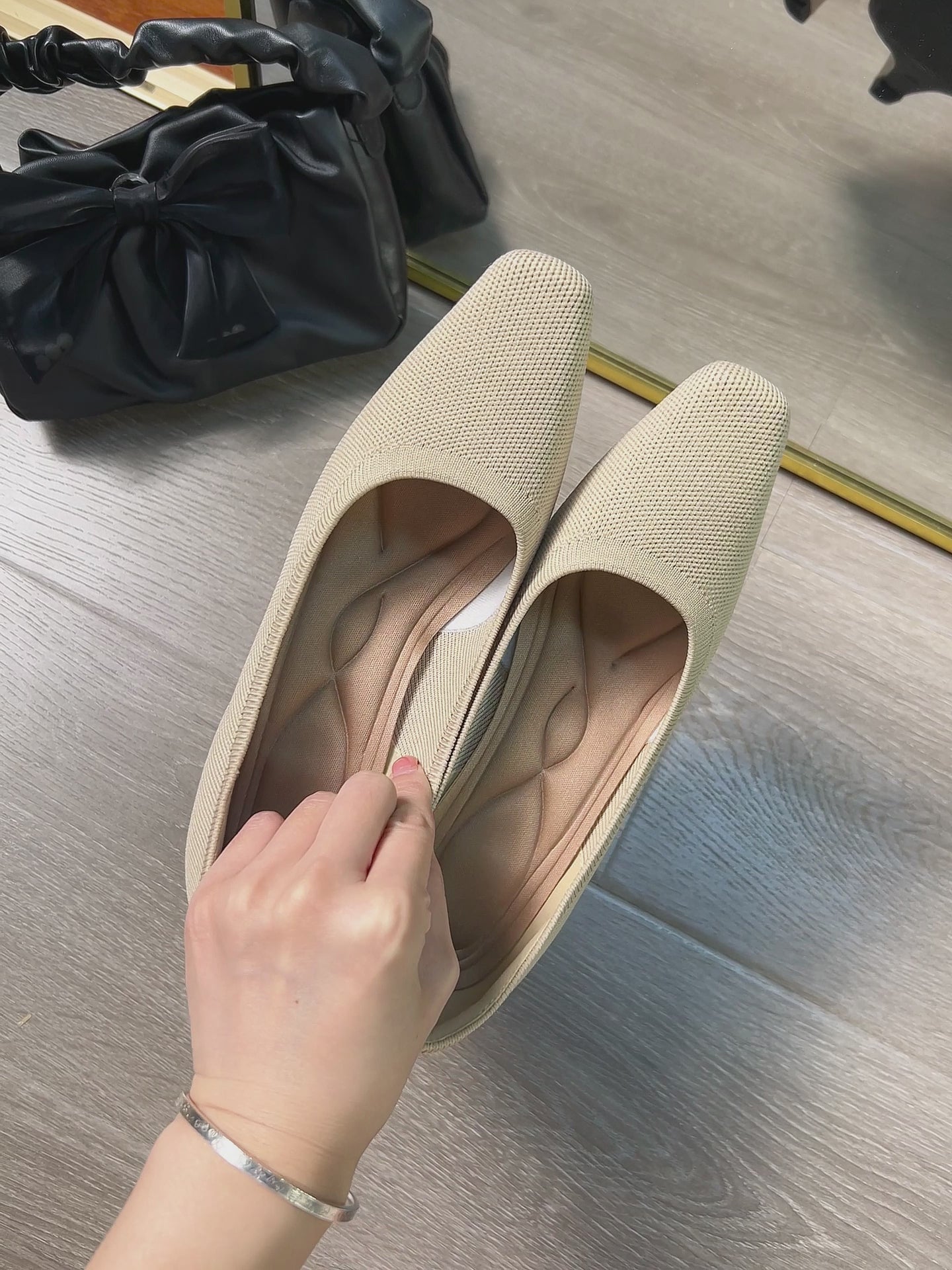 アッパーは一日中足がむくんでも伸縮し、柔らかく心地よい糸が足を優しく包み込みます。裸足で履いても快適なストレスフリーの感覚を提供します。